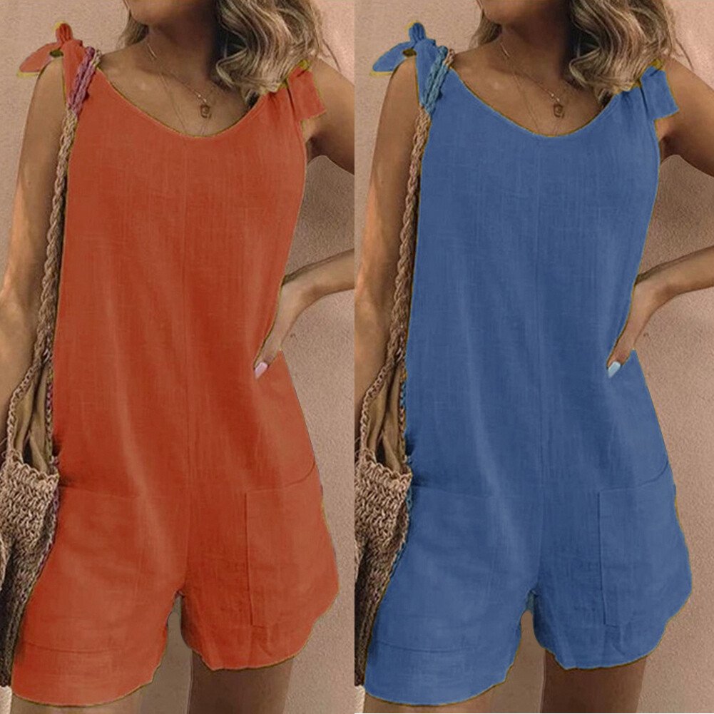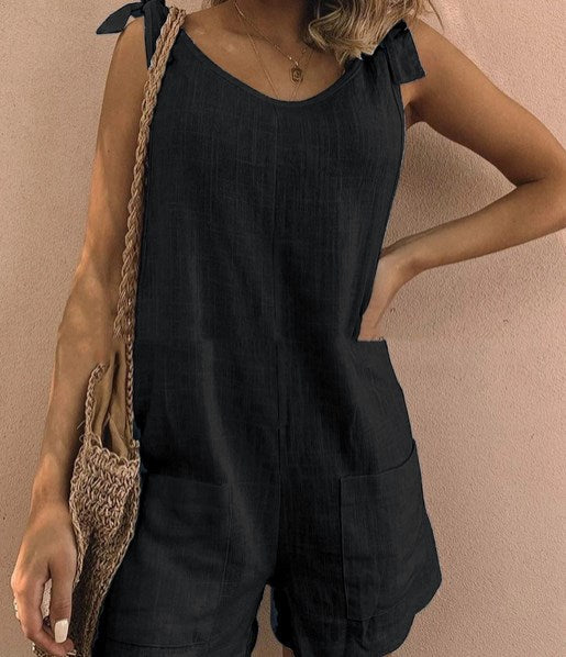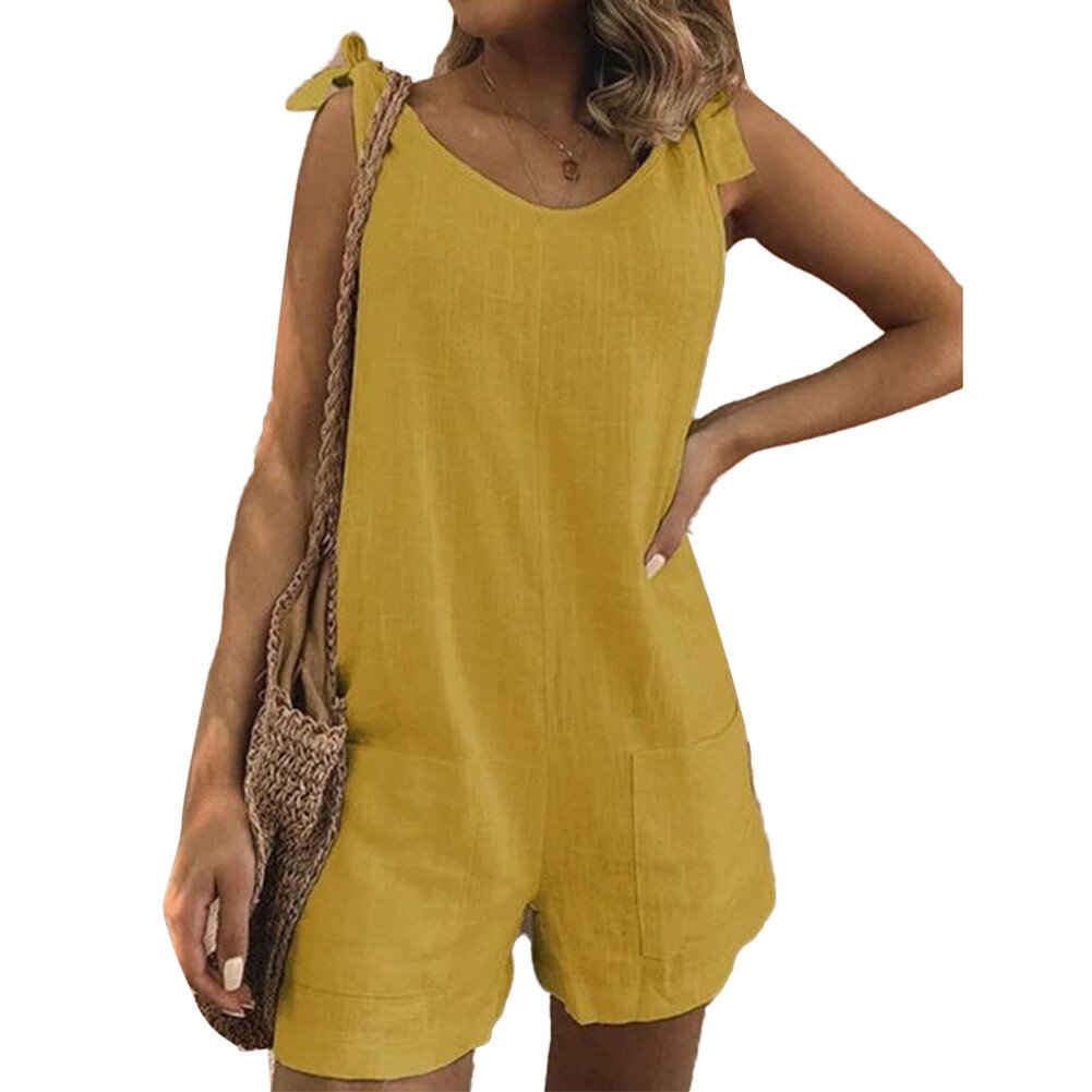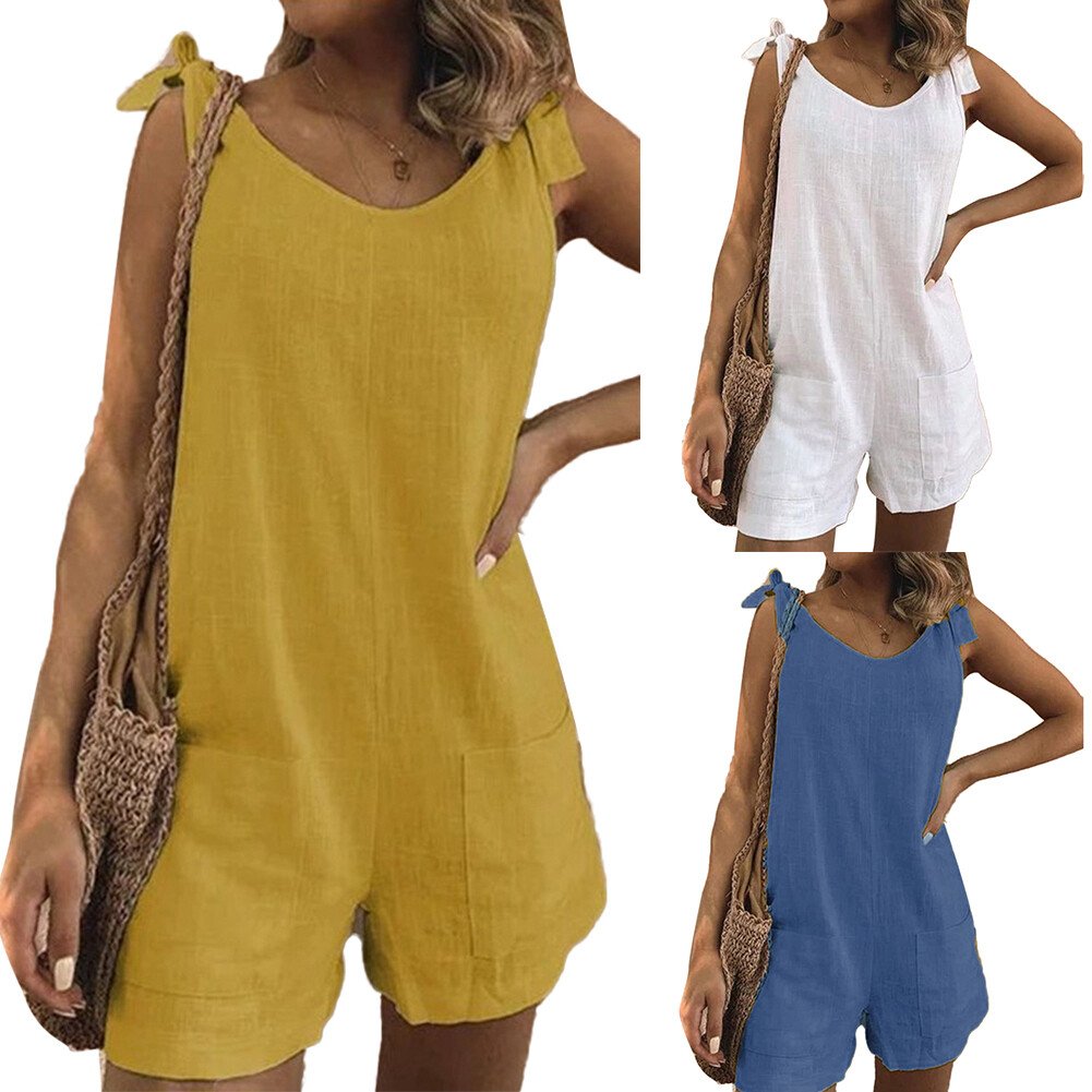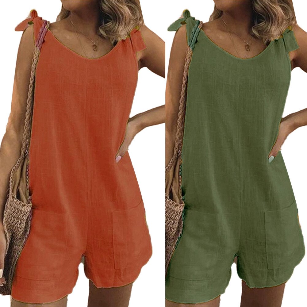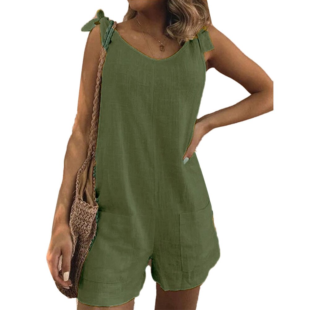 Einfarbige ärmellose verstellbare Träger Taschen Lose kurze Hosen Overalls