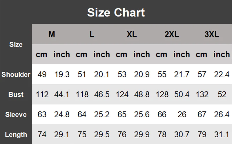 Größe: M, L, XL, 2XL, 3XL