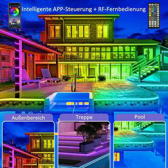 ✅ Geeignet für den Innen- und Außenbereich. Wasserdichte LED-Streifen, ideal zur Beleuchtung Ihres gesamten Hauses, z. B. Garten, Terrasse, Hinterhof, Treppenhaus, Dachterrasse, Küche, Schrank, Veranda, Terrasse, Garage, Wohnzimmer usw.