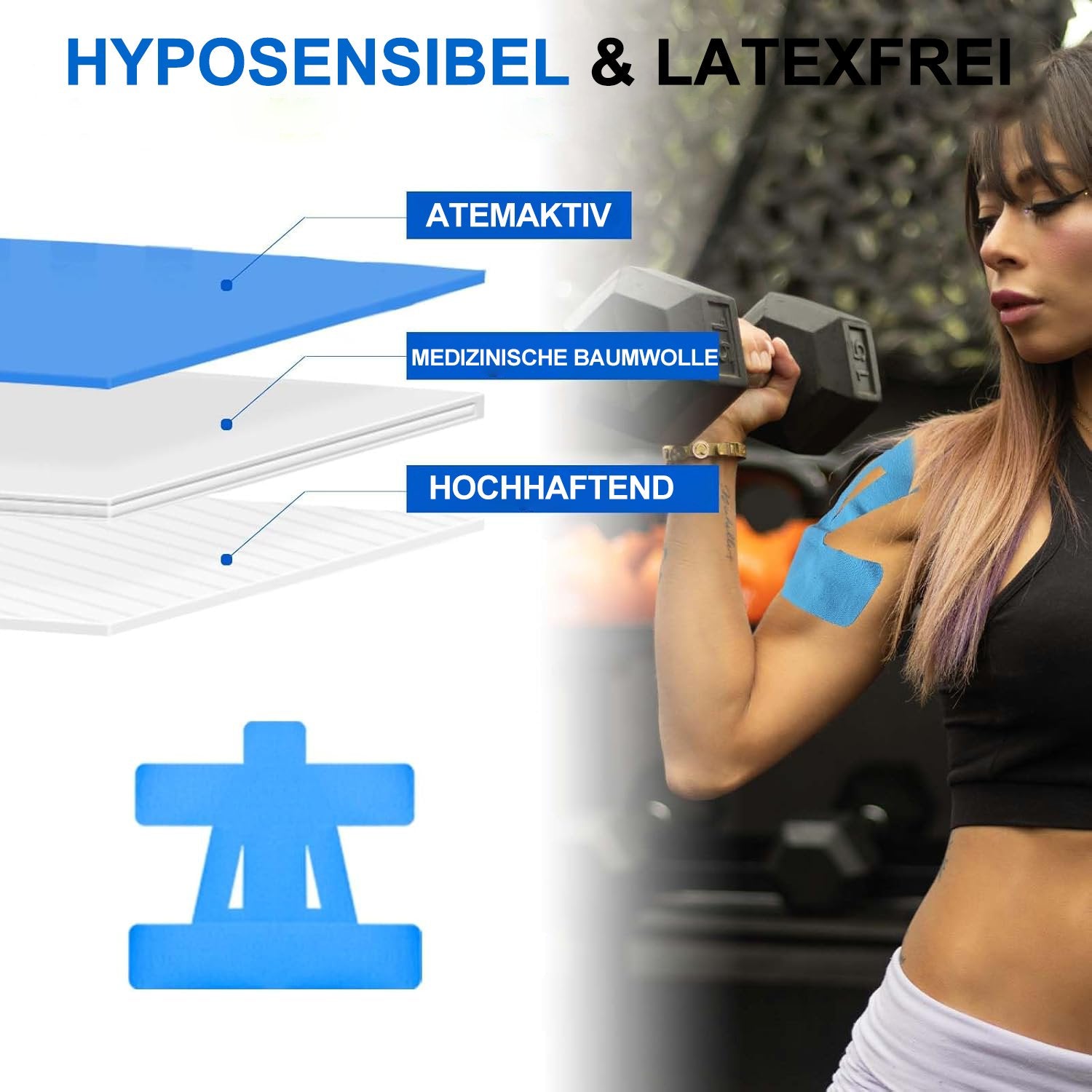 🧴 Hautfreundlich & latexfrei: Dieses Tape ist ohne Latex und Gummi hergestellt und daher für alle Hauttypen geeignet, auch für empfindliche Haut. Der sanfte Klebstoff und das atmungsaktive Gewebe bieten ganztägigen Komfort und machen es zu einer intelligenten, unterstützenden Lösung für Sportler und aktive Menschen.