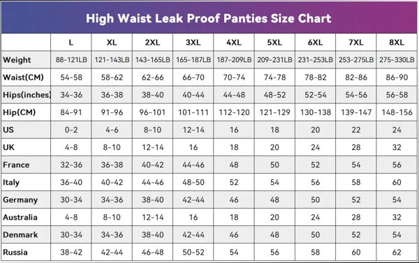 Wenn Sie die Größe Ihrer Unterwäsche nicht kennen, können Sie sie nach Gewicht bestellen. Sie können auch nach der Größentabelle bestellen.